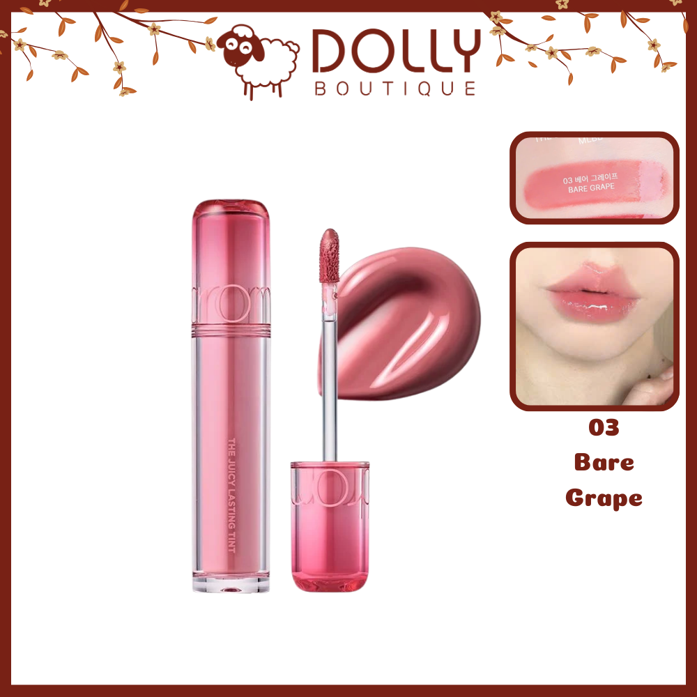 - Son Tint Lì Romand Juicy Lasting Tint là son tint thuộc thương hiệu Romand với chất son trong trẻo, tạo hiệu ứng căng mọng tự nhiên cho đôi môi, màu son duy trì trong nhiều giờ liền cho bạn cảm giác bờ môi sáng bóng, căng mọng và ngọt ngào.