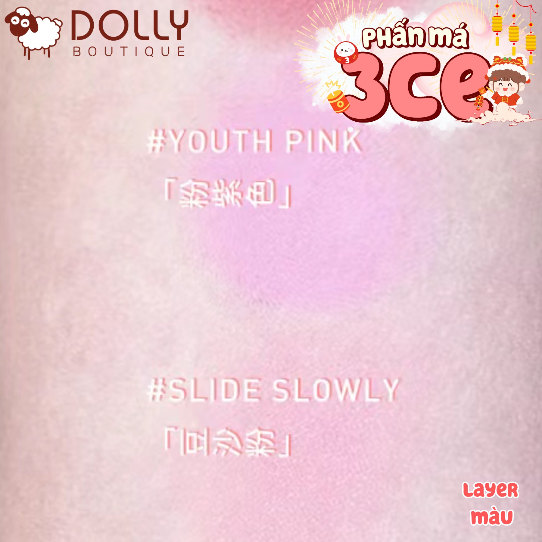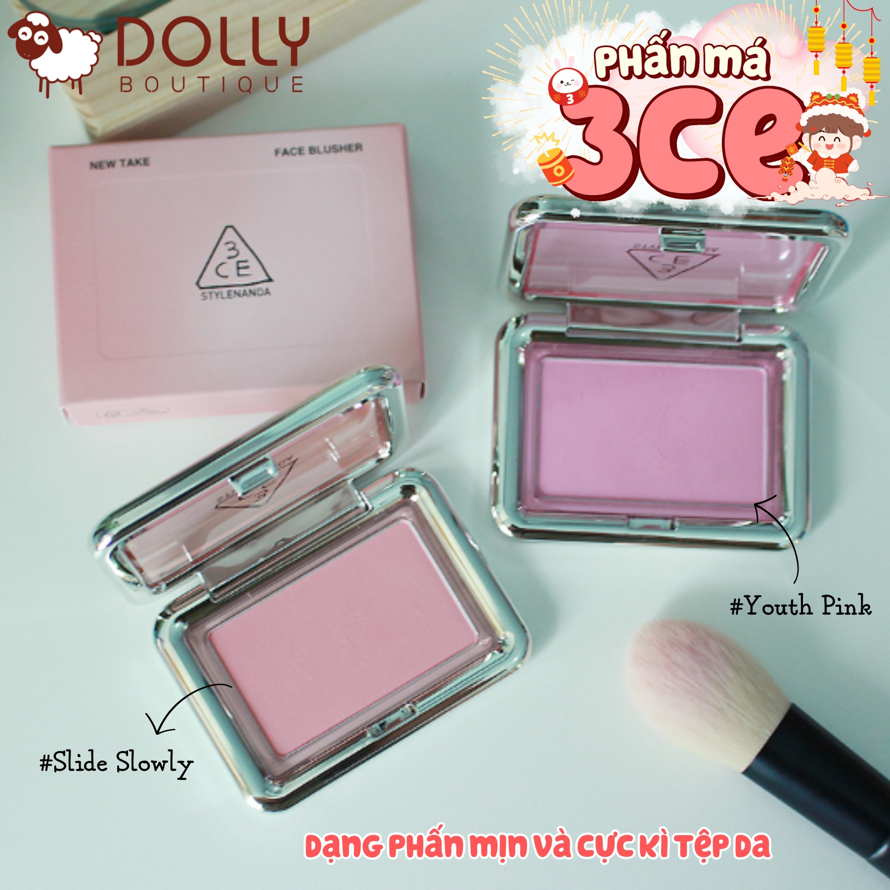 - Phấn Má Hồng 3CE New Take Face Blusher là dòng sản phẩm phấn má hồng dạng nén thuộc thương hiệu 3CE, với chất phấn mịn lì, nhỏ mịn có khả năng lên màu chuẩn xác, tự nhiên chỉ sau một lần lấy phấn.