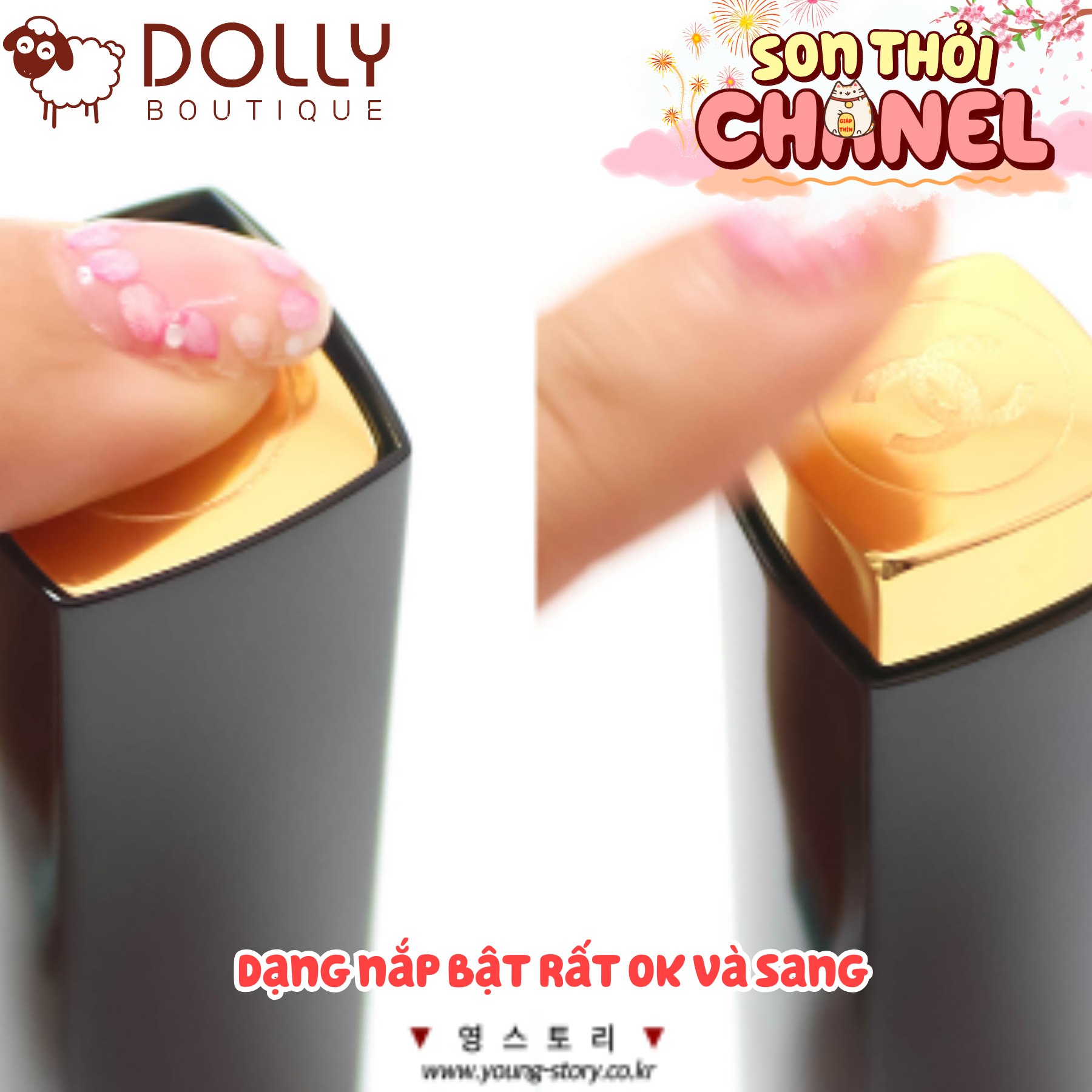 - Thiết kế của dòng son lì Chanel Rouge Allure có nắp son màu đen bóng sang chảnh. Khi sử dụng son Chanel Rouge Allure các nàng chỉ cần ấn nhẹ vào phần đáy thân son để nắp bật ra. Son bật mở ra rất nhẹ nhàng, khi đóng lại cũng rất chắc chắn, không sợ bung ra làm gãy thân son.