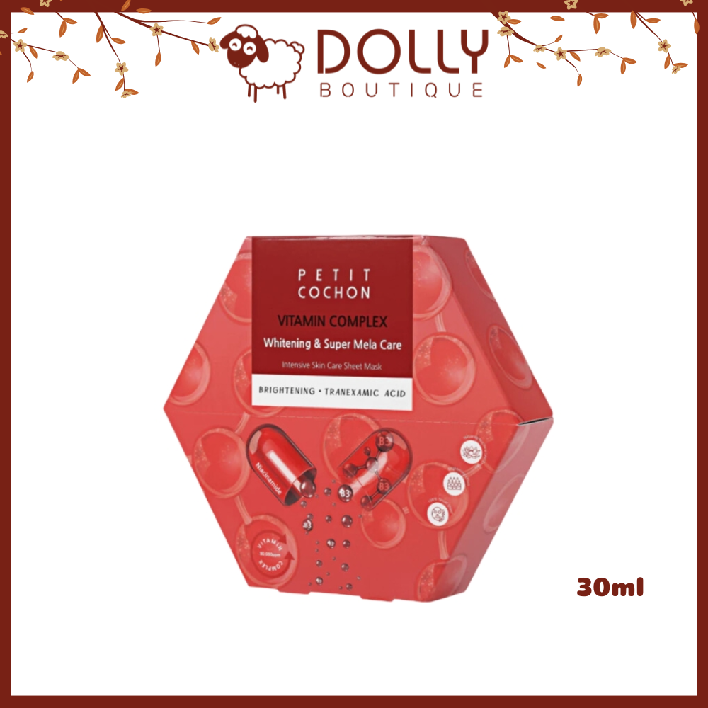 - Mặt nạ Petit Cochon Vitamin Complex Whitening đến từ thương hiệu Petitcochon nổi tiếng của Hàn Quốc là một sản phẩm dưỡng da chuyên sâu, mang lại hiệu quả vượt trội cho người dùng với làn da sáng mịn, đều màu và tươi trẻ. Sản phẩm không chỉ chú trọng đến việc làm đẹp da mà còn bảo vệ sức khỏe làn da, nhờ vào sự kết hợp hoàn hảo giữa các thành phần tự nhiên và công nghệ hiện đại. Với dung tích 30ml, mặt nạ Petit Cochon Vitamin Complex Whitening có thể đáp ứng nhu cầu chăm sóc da của nhiều loại da khác nhau, từ da khô, da nhạy cảm đến da mụn.