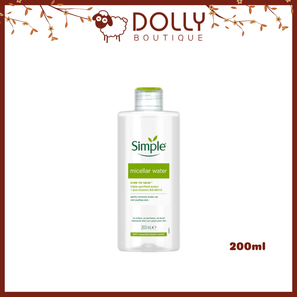 - Nước Tẩy Trang Simple Làm Sạch Trang Điểm Và Cấp Ẩm là sản phẩm tẩy trang mặt đến từ thương hiệu Simple xuất xứ Anh Quốc. Công thức cải tiến với công nghệ làm sạch Micellar chứa hàng triệu bong bóng Micelles thông minh giúp loại bỏ lớp trang điểm và bụi bẩn hiệu quả, làm thông thoáng lỗ chân lông, mang lại cảm giác tươi mát cho da sau khi sử dụng, đồng thời cấp ẩm lên đến 4 giờ mà không để lại dư lượng thừa trên da.