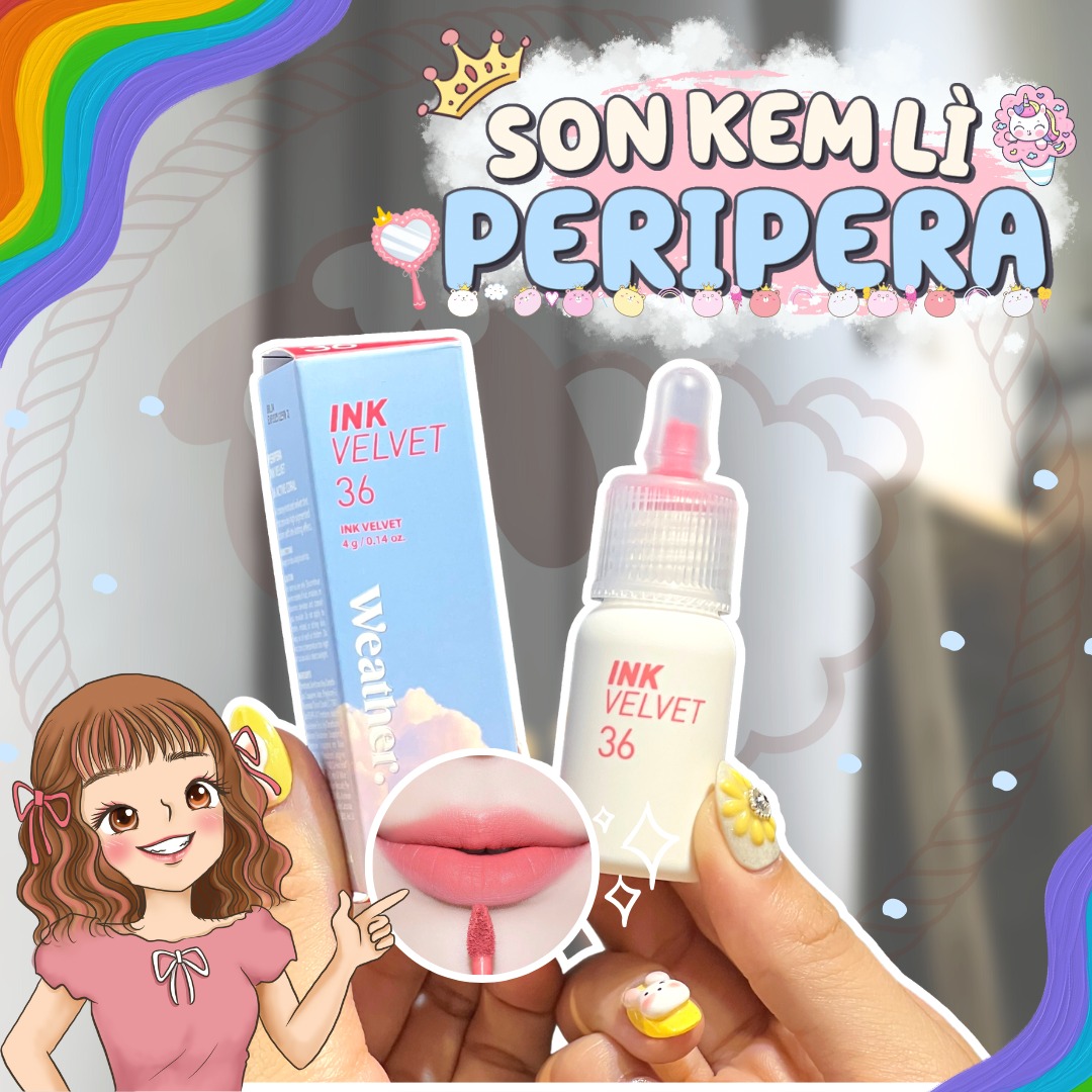 - Son Kem Lì Peripera Ink The Velvet Weather là bộ sưu tập son mới vừa ra mắt của hãng Peripera gồm 5 màu từ tông sáng đến tông trầm, được lấy cảm hứng từ sự thay đổi của thời tiết để tạo nên những sắc son vừa thu hút và trendy
